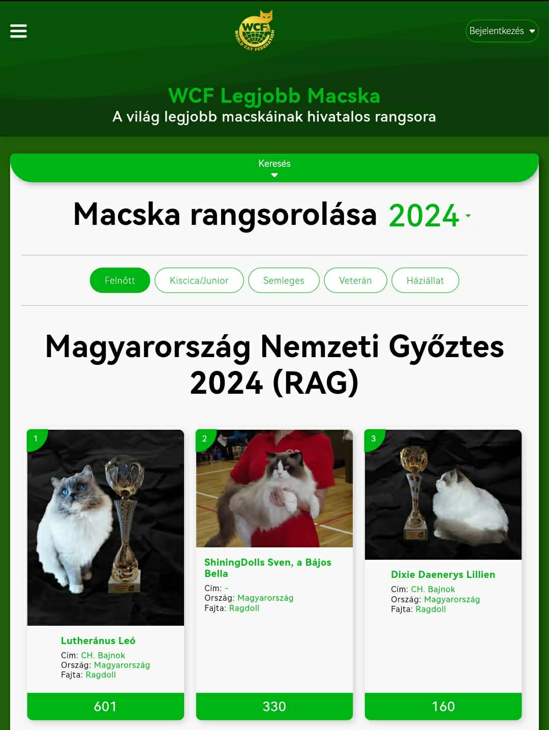 Büszkeséggel osztjuk meg, az elmúlt 6 év kitartó munkájának köszönhetően 2024-ben a magyar Ragdoll tenyészetek közül kennelünk cicái dobogós helyen végeztek, 2025-ben pedig csak a saját tenyésztésű cicáink szerepeltek ezen ranglistán.